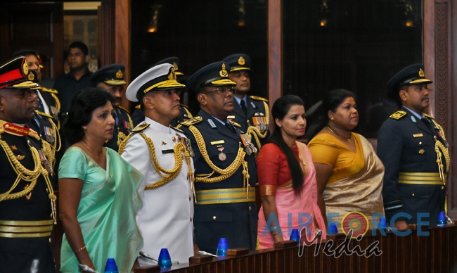 මෙහිදී ගුවන් හමුදාවේ උසස් නිළධාරීන් 13 දෙනෙකු විශිෂ්ට සේවා විභූෂණයෙන් පිදුම් ලබන ලදී. ගුවන් හමුදා මාණ්ඩලික ප්රධානී එයාර් වයිස් මාර්ෂල් සුමංගල ඩයස් සහ නියෝජ්ය මාණ්ඩලික ප්රධානී එයාර් වයිස් මාර්ෂල් මොහන් ද සොයිසා යන මහත්වරු ගුවන් හමුදාවේ පදක්කම් හිමිකර ගන්නා ලද සේවයේ නියතු නිළධාරීන් අතර වුහ. ගුවන් හමුදාධිපති එයාර් මාර්ෂල් කපිල ජයම්පති මහතා සහ සේවා වනිතා ඒකකයේ සභාපතිනී අනෝමා ජයම්පති මහත්මිය මෙම අවස්ථාවට සහභාගී වූහ.