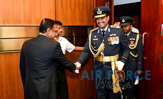 මෙහිදී ආරක්ෂක ලේකම් තුමන් විසින් ගුවන් හමුදාධිපතිතුමන්ට සිය නව තනතුර වෙනුවෙන් සුබපැතුම් පිරිනැමීය.