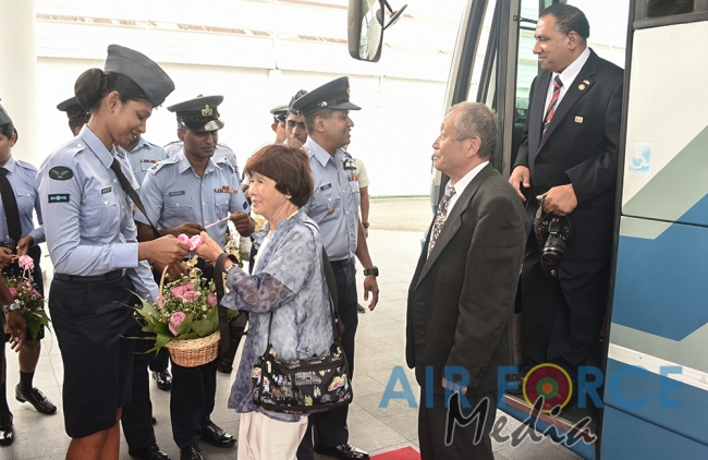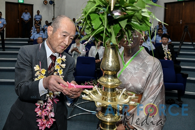 සම්ප්රදායානුකූලව පොල්තෙල් පහන දැල්වීමෙන් අනතුරුව ගුවන් හමුදා නර්තන කණ්ඩායම විසින් පිළිගැනීමේ නර්තනය ඉදිරිපත් කරන ලදී. අනතුරුව, ගුවන් හමුදා ප්රදාන ගිනි නිවීමේ නිළධාරී විංග් කමාන්ඩර් චන්දන රත්නායක විසින් ජපාන ධූත පිරිස පිළිගනිමින් පිළිගැනීමේ කථාව සිදුකරන ලදී.