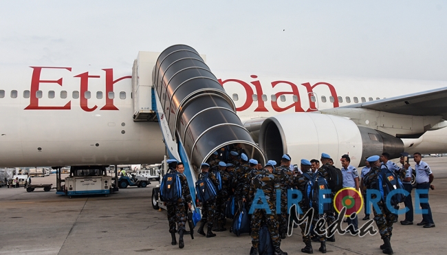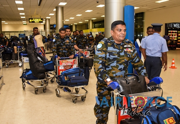 බණ්ඩාරනායක ජාත්යන්තර ගුවන් තොටුපලෙන් මධ්යම අපි්රකාව බලා පිටත්ව ගිය බලඇණිය සඳහා ගුවන් හමුදා සාමාජිකයින් 109 දෙනෙකු ඇතුලත් වූ අතර මෙම බලඇනිය බාරව කටයුතු කරනු ලබන්නේ විංග් කමාන්ඩර් කුෂාන් වන්නිආරච්චි වන අතර ඔවුන් පිටත්ව යන අවස්ථාව සදහා ගුවන් හමුදාවේ ජ්යේෂ්්ඨ නිළධාරීන් පිරිසක් සහ පිටත්ව ගිය බලඇණි සාමාජිකයින්ගේ පවුල් වල සාමාජිකයන් රැසක්ද පිටත්වීමේ පර්යන්තය වෙත පැමිණ සිටියහ.