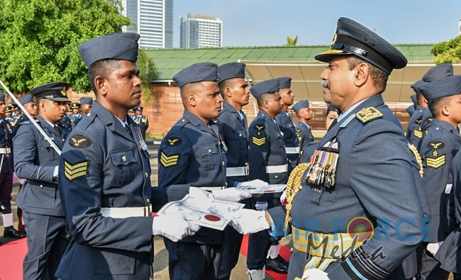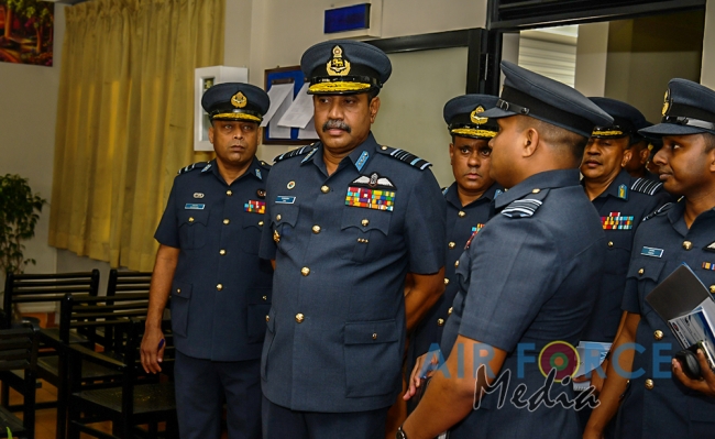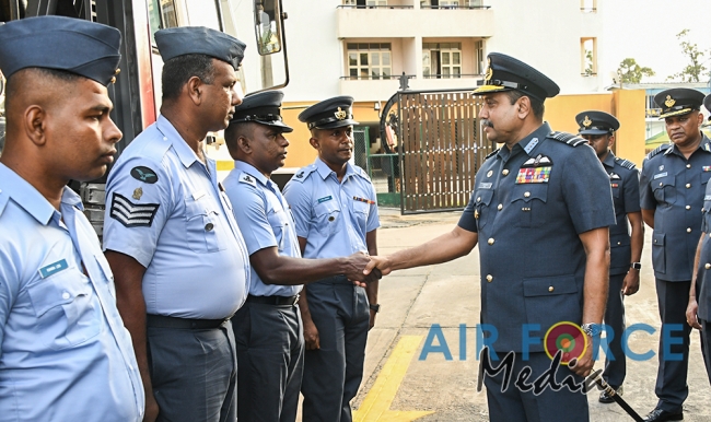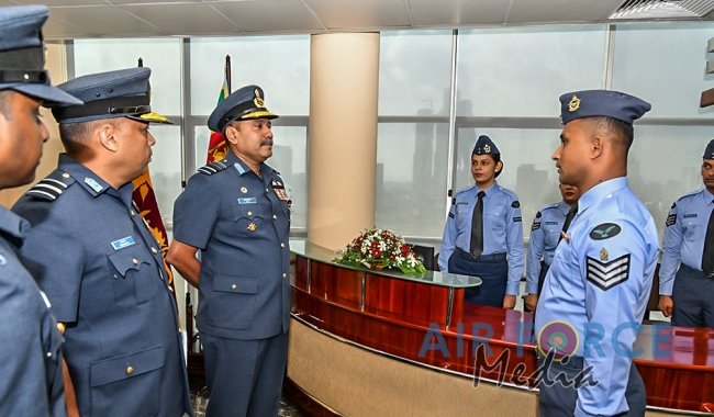 කොළඹ ගුවන් හමුදා කඳවුරු අණදෙන නිළධාරී එයාර් වයිස් මාර්ෂල් කැමිලස් ලැබ්රෝයි මහතා විසින් ගුවන් හමුදාධිපතිතුමන් පිළිගන්නා ලදී. මෙහිදී උත්තමාචාර පෙළපාලියක් මගින් ගුවන් හමුදාධිපතිතුමන් වෙත උත්තමාචාර පුදකරන ලද අතර ප්රධාන බලලත් නිළධාරී 1, බලලත් නිළධාරීන් 6, ජ්යේෂ්ඨ අධිකාරී නොලත් නිළධාරීන් 22 ක්, කණිෂ්ඨ අධිකාරී නොලත් නිළධාරීන් 5 ක් නායක ගුවන් භටයින් 2 සහ සිවිල් සේවක මහත්ම මහත්මීන් 8 දෙනෙකු හට ඔවුන් දක්වන ලද විශිෂ්ඨ කාර්ය භාරය වෙනුවෙන් ගුවන් හමුදාධිපතිතුමන්ගේ ඇගයීමට ලක්කෙරිණි.