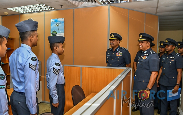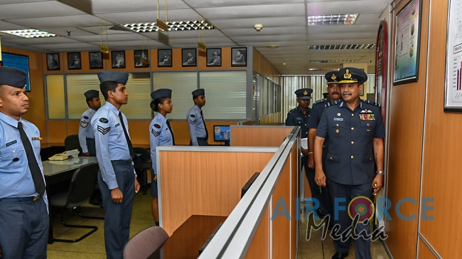 ගුවන් හමුදාධිපතිතුමන් ගුවන් හමුදා මූලස්ථානයේ සියළුම් අධ්යක්ෂකයන් ඇතුළු සියළුම අංශයන් සිය පරීක්ෂණයට ලක්කරන ලද අතර මූලස්ථානය පරීක්ෂනයෙන් අනතුරුව ගුවන්පුර ගුවන් හමුදා කඳවුරු පරිශ්රය වෙත සිය පරීක්සණය සඳහා පිටත්ව යන ලදී.