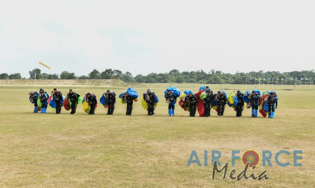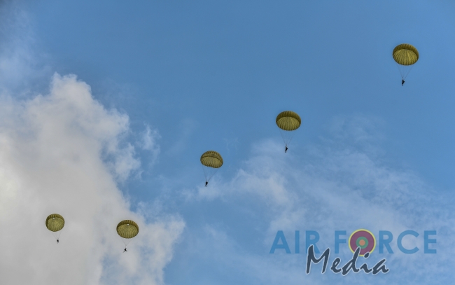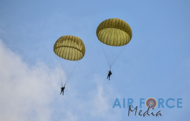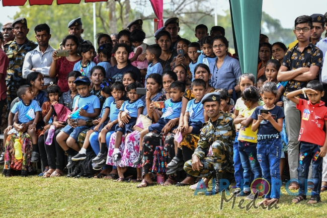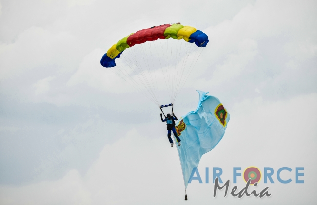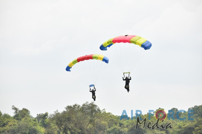 වයි12 ගුවන් යානයක් ආධාරයෙන් අඩි 1000 ක පමණ උසක සිට මූලික පැරෂුට් පැනීමේ පාඨමාලාවේ භටයින් සිය පැනීම් සිදුකරමින් පෙළපාලිය ආරම්භ කරන ලද අතර අනතුරුව අඩි 10000 ක පමණ උසක සිට නිදහස් ආර පැරෂුට් පැනීමේ භටයින් (ස්කය් ඩයිවර්ස්) විසින් අහසේ සුන්දර රටා මවමින් සිය පැනීම් සිදු කරන ලදී.