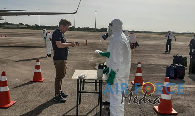 ගුවන් හමුදාධිපති එයාර් මාර්ෂල් සුමංගල ඩයස් මහතාගේ උපදෙස් මත පයිලට් ඔෆිසර් එස්කේඑස් රුක්ෂාන්ගේ නායකත්වයෙන් යුත් ගුවන් හමුදා ජීව විද්යාත්මක, රසායනික, විකිරණශීලී හා න්යෂ්ඨික පුපුරණ ද්රව්ය සඳහා ප්රතිචාර දැක්වීමේ පක්ෂාංගයේ (සීබීආර්එන්ඊ) කණ්ඩායමක් විසින් බෙල්ජියම් සිට දිවයිනට පැමිණි 43 දෙනෙකුගෙන් යුත් කණ්ඩායමක් ඔවුන්ගේ බඩු බාහිරාදිය සහ ඔවුන් පැමිණි ගුවන් යානය ද සමග විෂබිජහරණය සිදු කරන ලදී.