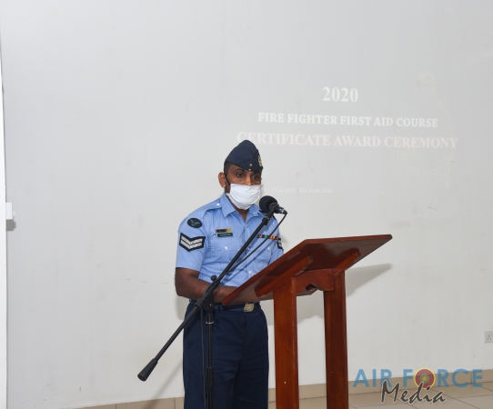 මෙම පාඨමාලාවේ සහතික පත් ප්රදානය 2020 ජූනි මස 26 වන දින කොලඹ ගුවන් හමුදා කඳවුරු අණදෙන නිලධාරී එයාර් වයිස් මාර්ෂල් සීබී ලැබ්රෝයි මහතාගේ ප්රදානත්වයෙන් පැවැත්විණි. කඳවුරු රෝහල් අණදෙන නිළධාරී ගෲප් කැප්ටන් පීඒවී පද්මපෙරුම,ගුවන් හමුදා ප්රධාන ගිනි නිළධාරී විංග් කමාන්ඩර් චමිල් හෙට්ටිආරච්චි ඇතුළු පිරිසක්ද මෙම අවස්ථාව සහභාගී වූහ.