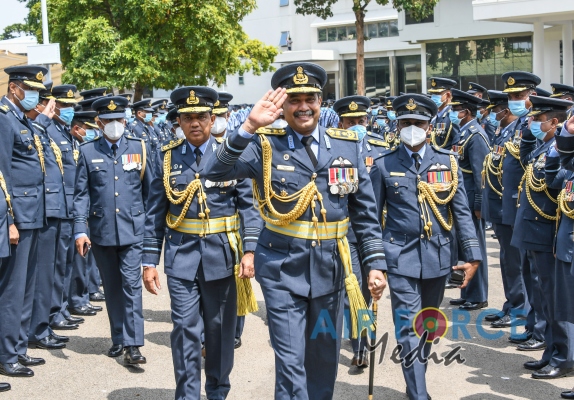 වීහ්රාම යනගුවන් හමුදාධිපතිතුමන් හට ගුවන් හමුදා වර්ණ පක්ෂාංගය විසින් උත්තමාචාර පෙළපාලියක් මගින් උත්තමාචාර දැක්වීමක්ද සිදුකරන ලදී. අනතුරුව විහ්රාම යන ගුවන් හමුදාධිපතිතුමන් සමස්ථ ගුවන් හමුදාව අවසන් වරට ආමන්ත්රණය කළේය. අවසානයේදී වීශ්රාම යන ගුවන් හමුදාධිපතිතුමන් විසින් ඝුවන් හමුදාධිපති දූරය නිළවශයෙන් භාරදීම සංකේතවත් කරමින් ගුවන් හමුදාධිපති යෂ්ටිය නව ගුවන් හමුදාධිපතිතුමන් හට භාරදීම සිදුකළේය. මෙම අවස්ථාවට ගුවන් හමුදා අධ්යක්ෂක මණ්ඩලය, නිළධාරීන් සහ සෙසු නිළයන් රැසක්ද සහභාගී වූහ.