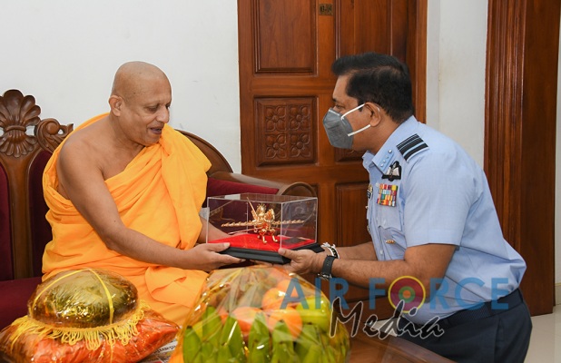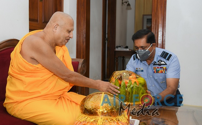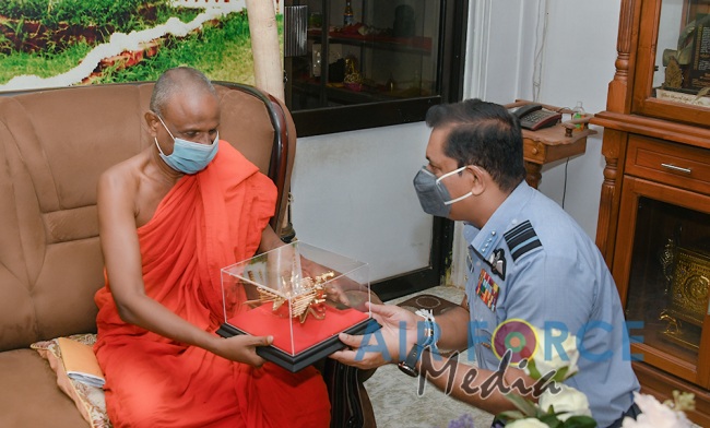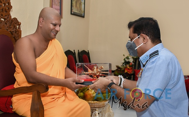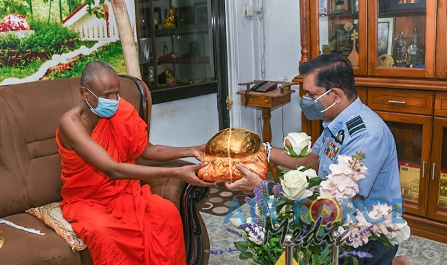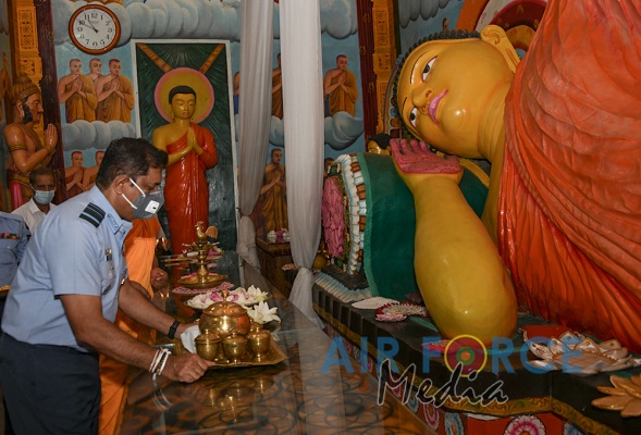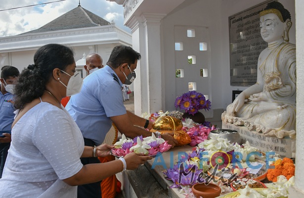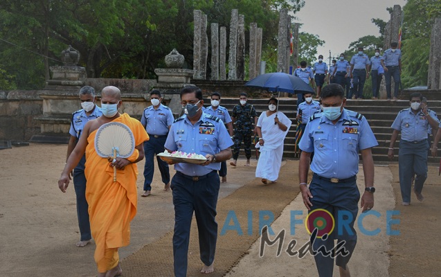 ගුවන් හමුදාධිපතිිතුමන් ශී්ර මහා බෝධීන් වහන්සේ වැද පුදා ගනී