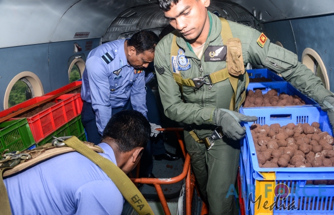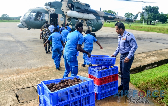 ඇහැළ, මී, කුඹුක්, මාර, බුළු සහ සියඹලා යන ශාක වර්ගයන්ට අයත් බීජ 70000 ක් පමණ ශ්රී ලංකා ගුවන් හමුදාවේ එම් අයි 17 වර්ගයේ හෙලිකොප්ටර් යානාවක් ආධාරයෙන් පොළවට ඉසීම සිදුකරනු ලැබීය.