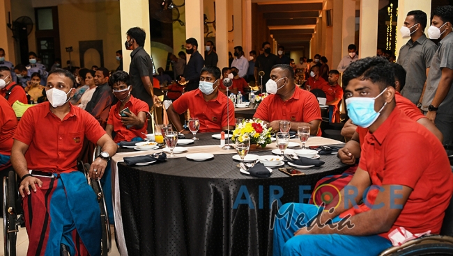 ආරක්ෂක අමාත්යාංශයේ සේවා වනිතා ඒකකය මගින් සංවිධානය කරන ලද අත්තිඩිය මිහිඳු සෙත් මැදුරේ නේවාසිකව ප්රථිකාර ලබන ආබාදිත රණවිරුවන් වෙනුවෙන් 2021 පෙබරවාරි 20 වන දින පැවැත්වූ වර්ණවත් රාත්රී භෝජන සංග්රහය සඳහා ගුවන් හුමදාධීපති එයාර් මාර්ෂල් සුදර්ශන පතිරණ මහතා සහ සේවා වනිතා ඒකකයේ සභාපතිනී චාමිනී පතිරණ මහත්මිය සහභාගී වූහ.
