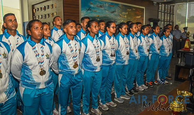 ගුවන් හමුදාධිපති එයාර් මාෂල් සුදර්ශන පතිරන මහතාගේ ප්රධානත්වයෙන් ආරක්ෂක සේවා ක්රීඩා සහ ජාතික ක්රීඩා ශූරතාවලියේදී විශිෂ්ට දස්කම් දැක්වු ක්රිඩක ක්රීඩිකාවන් හට විශේෂ උපහාර උළෙලක් අද දින (06) පෙරවරුවේ ගුවන් හමුදා මූලස්ථානයේදී පැවැත්වීය.