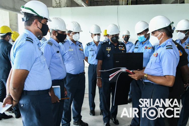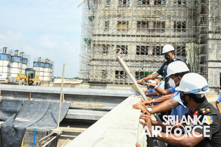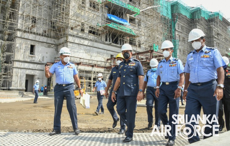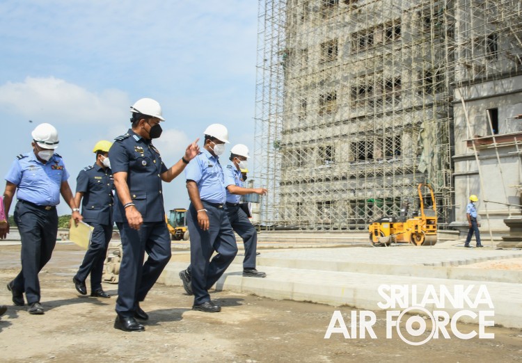 ගුවන් හමුදාපතිතුමන් අකුරේගොඩ ආරක්ෂක මූලස්ථාන සංකීර්ණයේ අලුතින් ඉදිකරමින් පවතින ගුවන් හමුදා මුලස්ථානයේ නිරීක්ෂණයක