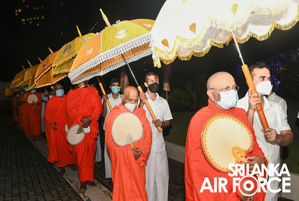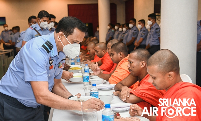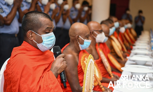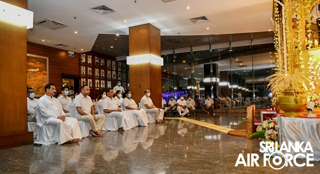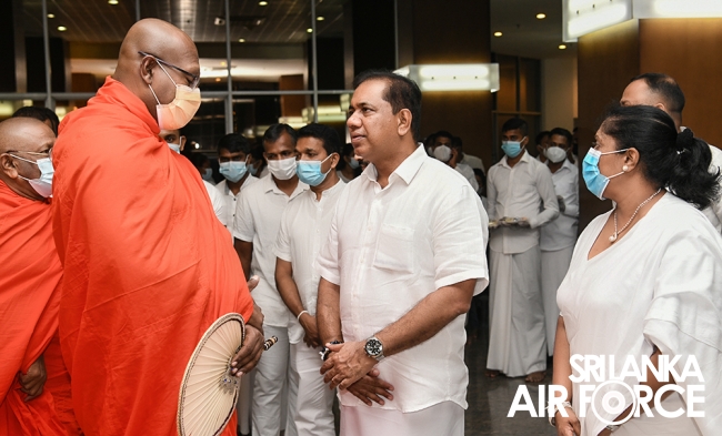 සර්ව රාත්රික පිරිත් සජ්ඣායනා පිංකම සඳහා මෙන්ම දානමය පිංකම සඳහා ගුවන් හමුදා මාණ්ඩලික ප්රධානී එයාර් වයිස් මාර්ෂල් ප්රසන්න පායෝ මහතා ඇතුළු ගුවන් හමුදා කළමණාකාර මණ්ඩලයේ සාමාජිකයින්, ජ්යෙෂ්ඨ නිලධාරීන් සහ සියලුම නිළධාරීන් සහභාගී වූහ. COVID-19 වැළැක්වීම සඳහා පිහිටුවා ඇති සෞඛ්ය මාර්ගෝපදේශ වලට අනුකූලව මෙය සිදු කරන ලදී.