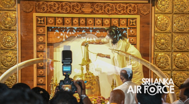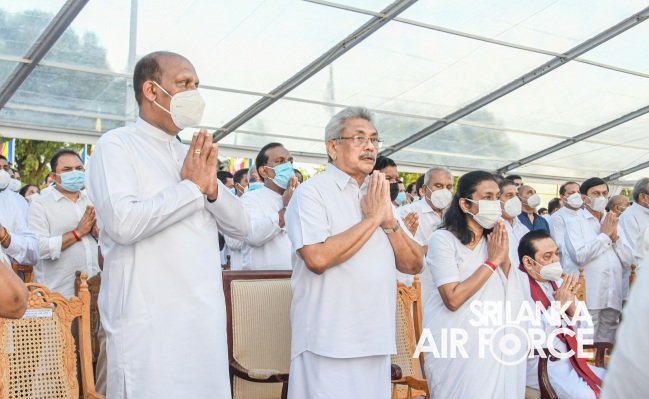 මහා සංඝරත්නයේ ආශිර්වාද මධ්යයේ පැවති මෙම ආගමික උත්සවයට ගුවන් හමුදාධිපති එයාර් මාර්ෂල් සුදර්ශන පතිරණ සහ චාමිනී පතිරණ යන මහත්ම මහත්වීම්ද සහභාගී විය.