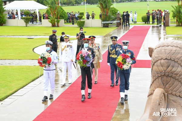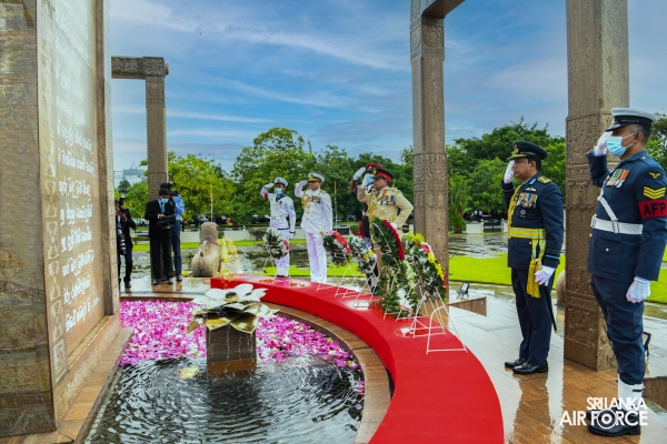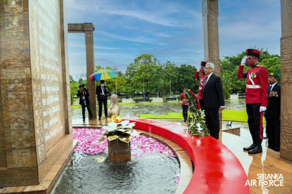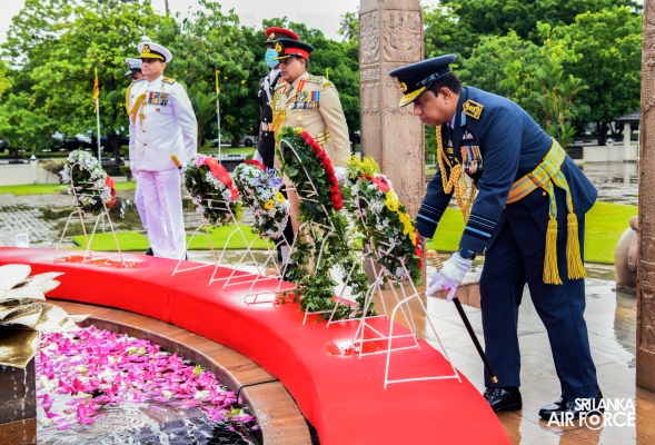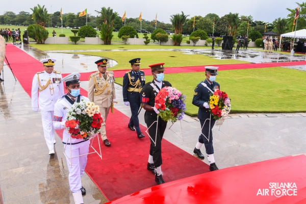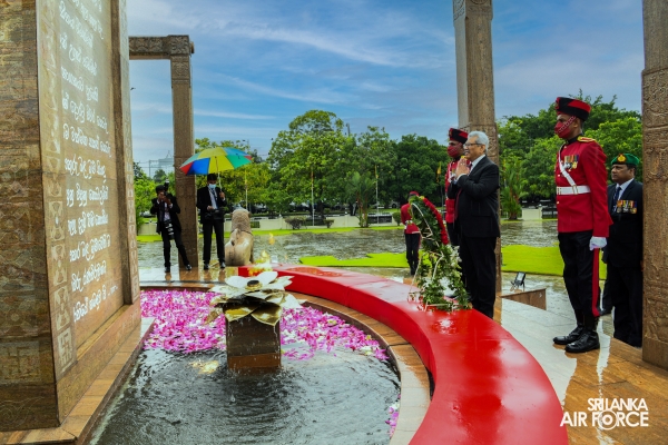 ත්රිවිධ හමුදාවේ සහ පොලිස් නිලධාරීන්ගේ උත්තරීතර පරිත්යාගය සිහිකරමින් අතිගරු ජනාධිපතිතුමා ස්මාරකය වෙත පුෂ්පෝපහාර දැක්වීය. මෙම අවස්ථාවට ගුවන් හමුදාපති එයාර් මාර්ෂල් සුදර්ශන පතිරණ, ආරක්ෂක අමාත්යාංශයේ ලේකම් ජෙනරාල් කමල් ගුණරත්න (විශ්රාමික), මහජන ආරක්ෂක අමාත්යාංශයේ ලේකම් මේජර් ජෙනරාල් ජගත් අල්විස් (විශ්රාමික), යුධ සහ නාවික හමුදාපතිවරුන් ඇතුළු විශාල පිරිසක් සහභාගි වූහ.