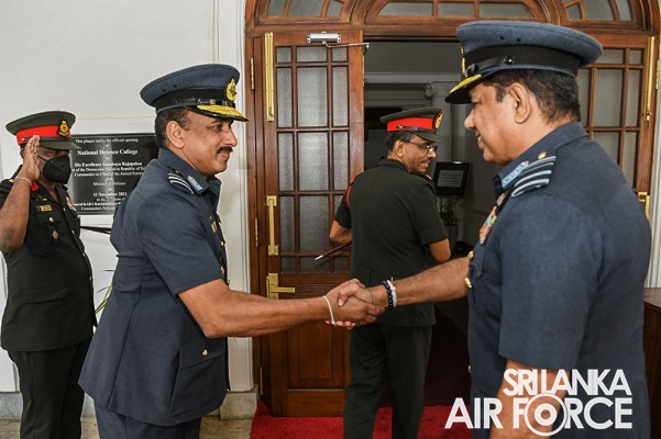 ජාතික ආරක්ෂක විද්යාලය වෙත පැමිණි ගුවන් හමුදාධිපතිතුමන් ජාතික ආරක්ෂක විද්යාලයේ සේනාවිධායක මේජර් ජෙනරාල් අමල් ගුණසේකර විසින් පිළිගන්නා ලදී. ඉන් අනතුරුව, ජාතික ආරක්ෂක විද්යාලයේ ජ්යෙෂ්ඨ අධ්යක්ෂක මාණ්ඩලික, කොමදෝරු අනිල් බෝවත්ත විසින් ගුවන් හමුදාධිපතිතුමාගේ දේශනය සඳහා කටයුතු භාර දීමට පෙර ගුවන් හමුදාධිපතිතුමන් පිළිබඳ හඳුන්වාදීමේ සටහනක් තබන ලදී.