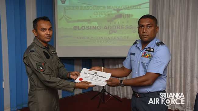 ලබන වසරේ මධ්යම අප්රිකාවේ 8 වැනි එක්සත් ජාතීන්ගේ බහුමාන ඒකාබද්ධ ස්ථායීකරණ මෙහෙයුමට යෙදවීමට නම් කර ඇති ගුවන් කාර්ය මණ්ඩල සාමාජිකයින්ගේ කාර්ය මණ්ඩල හා සම්පත් කළමනාකරණය පිළිබඳ දැනුම වැඩි දියුණු කිරීමේ අරමුණින් විධාන පියාසර ආරක්ෂණ පරීක්ෂක කාර්යාලය විසින් කාර්ය මණ්ඩල සම්පත් කළමනාකරණ පුහුණු වැඩසටහනක් පවත්වන ලදී.