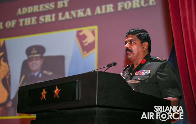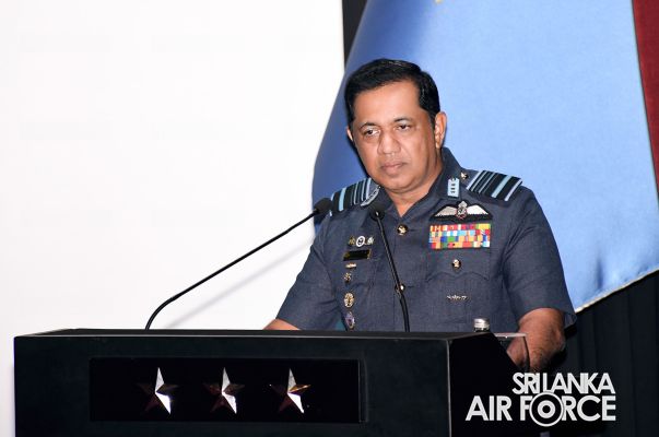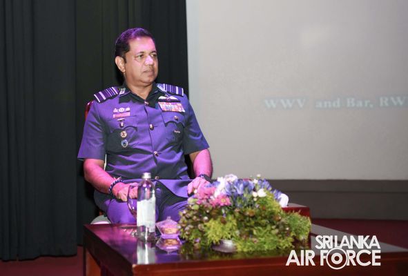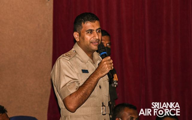 ගුවන් හමුදාධිපතිතුමන් සපුගස්කන්ද ආරක්ෂක සේවා අණ හා මාණ්ඩලික විද්යාලයේ නිලධාරීන් අමතයි