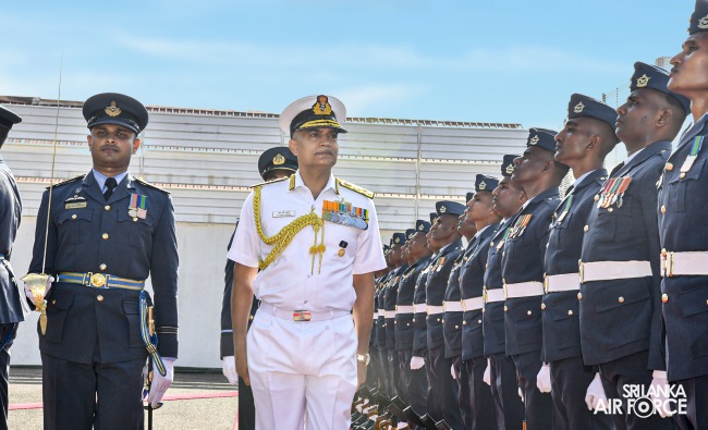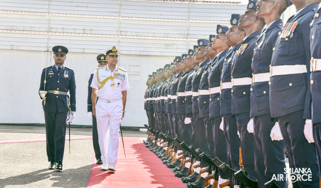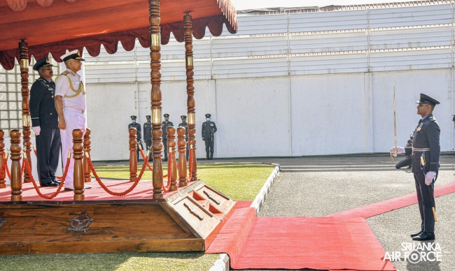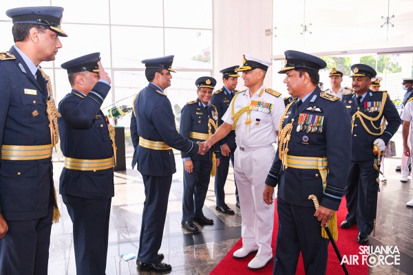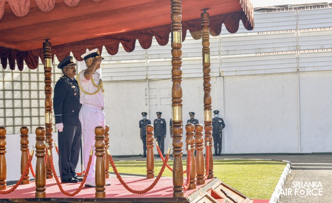 ශ්රී ලංකා ගුවන් හමුදා කොළඹ කඳවුරු අණදෙන නිළධාරී එයාර් කොමදෝරු පී.එස්.එන් ප්රනාන්දු විසින් නාවික හමුදා ප්රධානිතුමන් පිළිගන්නා ලද අතර, ගුවන් හමුදා අංක 43 වර්ණ පක්ෂාංගය විසින් ඔහු වෙත චාරිත්රානුකූල ගෞරව සම්මාන මුර පෙළපාලියක් පත්වන ලදී.
