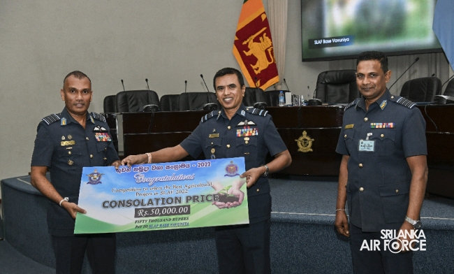 පලමු ස්ථානය වෙනුවෙන් ගුවන් හමුදා පාලවි කඳවුර රු. 500,000ක්,දෙවන ස්ථානය චීන වරාය ගුවන් හමුදා විද්යාපීඨය රු.300,000ක් සහ තෙවන ස්ථානය මුලතිව් ගුවන් හමුදා කඳවුර විසින් රු.200,000ක මුදල් ත්යාග හිමිකරගන්නා ලදී. රු.50,000 බැගින් වූ සැනසිලි ත්යාග ලෙස ශ්රී ලංකා ගුවන් හමුදා කටුනායක කඳවුර, වවුනියාව ගුවන් හමුදා කඳවුර, දියතලාව ගුවන් හමුදා සටන් පුහුණු පාසල, වන්නි ගුවන් හමුදා රෙජිමේන්තු පුහුණු පාසල, කටුකුරුන්ද ගුවන් හමුදා කඳවුර, මඩකලපුව ගුවන් හමුදා කඳවුර සහ ගුවන් හමුදා කඳවුරු ඓ කඳවුර හතකට ලබා දෙන ලදී. මෙම සැනසිලි ත්යාග ප්රදානය කරන ලද්දේ මාණ්ඩලික ප්රධානී එයාර් වයිස් මාර්ෂල් උදේනි රාජපක්ෂ මහතා විසිනි.