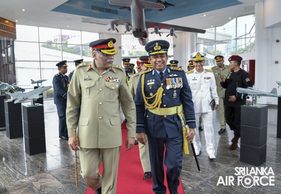 ශ්රී ලංකා ගුවන් හමුදා කොළඹ කදවුරු අණදෙන නිළධාරී එයාර් කොමොඩෝර් සුරේෂ් ප්රනාන්දු නිළධාරිතුමන් විසින් පාකිස්ථාන හමුදා ඒකාබද්ධ මාණ්ඩලික ප්රධානීතුමන් පිලිගත් අතර ගෞරව සම්මාන මුරයක්ද පිරිනමන ලදී.