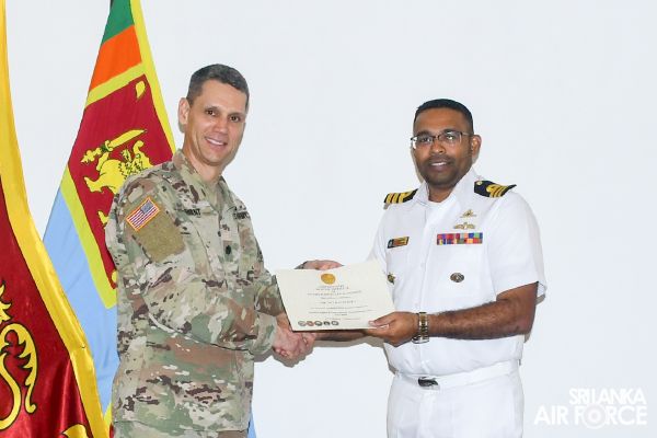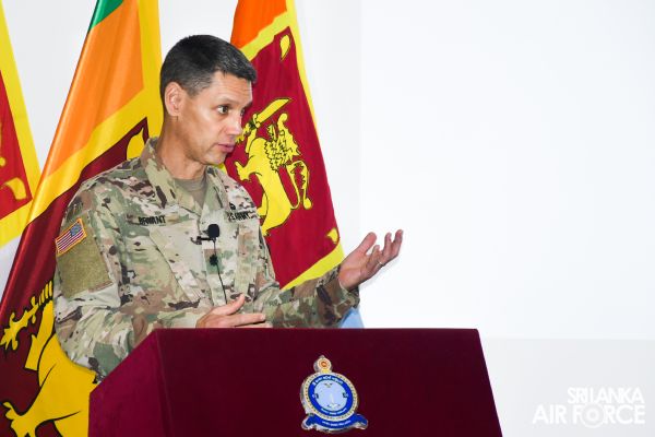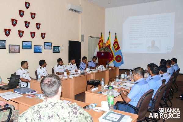 එක්සත් ජනපද ආරක්ෂක සාමාජිකයින් ශ්රී ලංකා නාවික හමුදා සහ ශ්රී ලංකා ගුවන් හමුදා නිලධාරීන් සමග දැනුම බෙදාගැනීමේ සැසියක් පවත්වනු ලබයි.