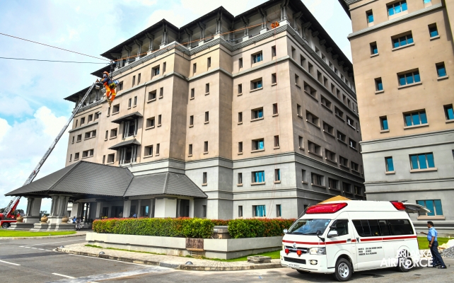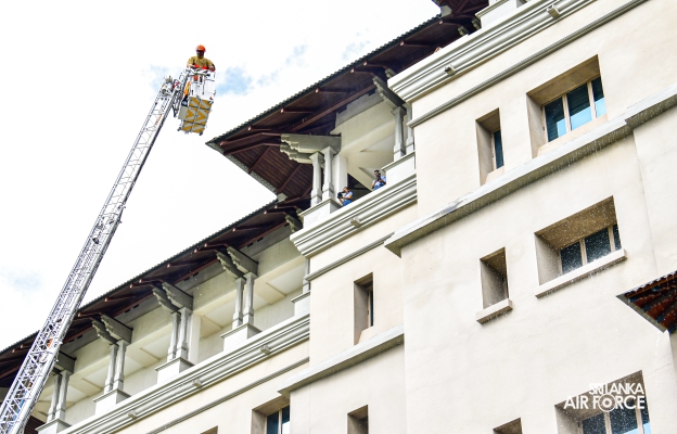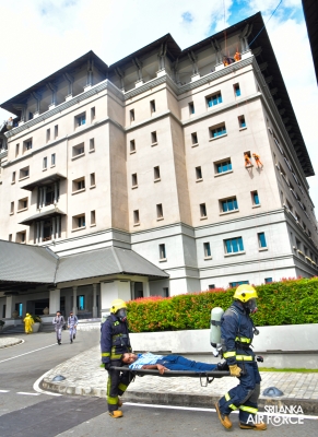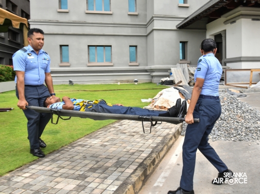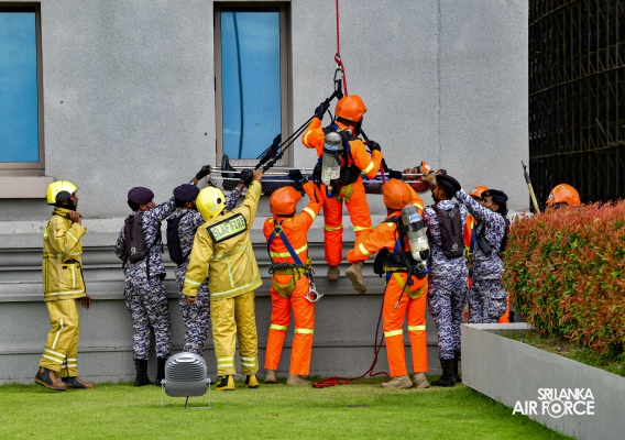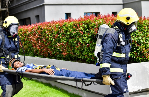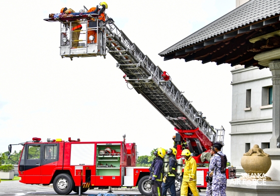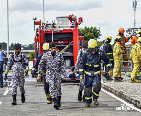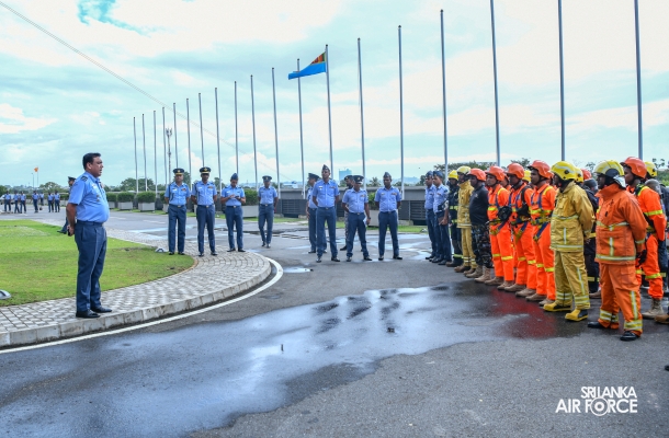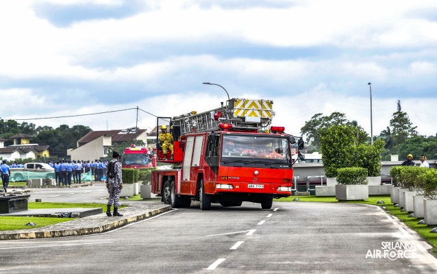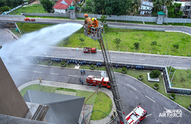 හදිසි ප්රතිචාර දැක්වීමේ සූදානම වැඩි දියුණු කිරීම සඳහා ගුවන් හමුදා මූලස්ථානයේ ගිනි නිවීමේ හා මුදවා ගැනීමේ අභ්යාස පවත්වයි