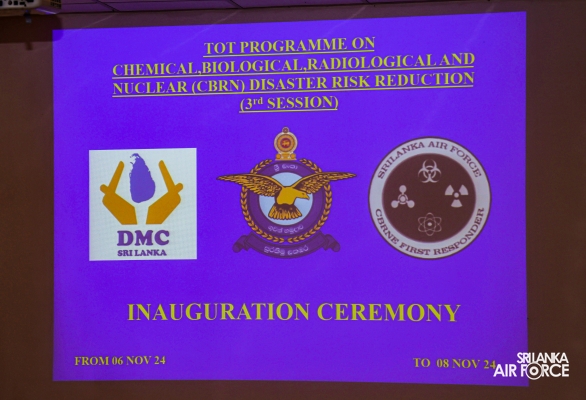 ශ්රී ලංකා ගුවන් හමුදාවේ අංක 49 රසායනික, ජීව විද්යාත්මක, විකිරණ විද්යාත්මක සහ න්යෂ්ටික පුපුරණ ද්රව්ය (CBRNE) පක්ෂාංගය විසින් කටුනායක ගුවන් හමුදා කඳවුරේදී රසායනික, ජීව විද්යාත්මක, විකිරණ සහ න්යෂ්ටික (CBRN) ආපදා අවදානම් අවම කිරීම පිළිබඳ පුහුණුකරුවන් පුහුණු කිරීමේ (TOT) වැඩසටහනක් සාර්ථකව පවත්වන ලදී. CBRN සිදුවීම් හා සම්බන්ධ අවදානම් අවම කිරීම සඳහා ඵලදායී ලෙස ප්රතිචාර දැක්වීමට සහ අවම කිරීමට ආපදා කළමනාකරණ නිලධාරීන්ගේ හැකියාවන් වැඩිදියුණු කිරීම මෙම පුහුණු වැඩසටහනේ අරමුණයි.