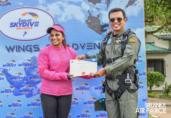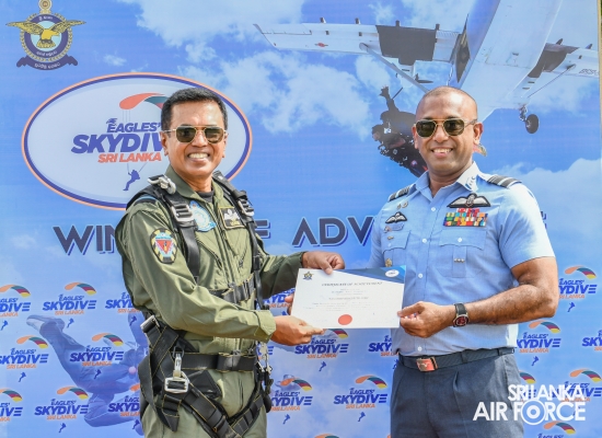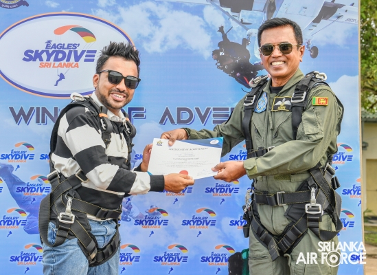 இலங்கை விமானப்படை 'ஈகிள்ஸ்' ஸ்கைடிவ் ஸ்ரீலங்கா' டேன்டெம் ஜம்ப் விளையாட்டுக் கழகத்தை அறிமுகப்படுத்தியது.