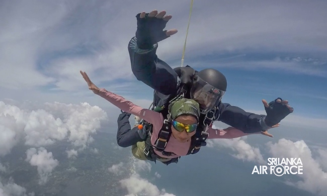 விமானப்படை இந்த டேன்டெம் ஜம்ப் சாகசத்தை அனைவரும் அணுகக்கூடியதாக மாற்றியுள்ளது மேலும் மேலும் தகவல்களை +94 768184436 அல்லது +94 772229264 என்ற எண்ணிற்கு அழைக்கலாம் அல்லது https://www.airforce.lk/skydive/ ஐப் பார்வையிடலாம்.